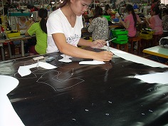 製造工程は、Kamioka (LAO)社にて裁断、縫製、底付けまでを行い、弊社の土浦工場にて仕上げ、最終検品を行い出荷いたします。